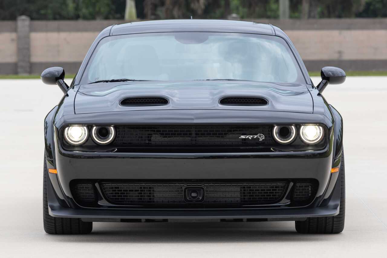 I want this or another image of front view of black widebody hellcat converted to the vertical phone wallpaper format. the phone only has one screen, no side screens, so it has to all fit into the vertical home screen.