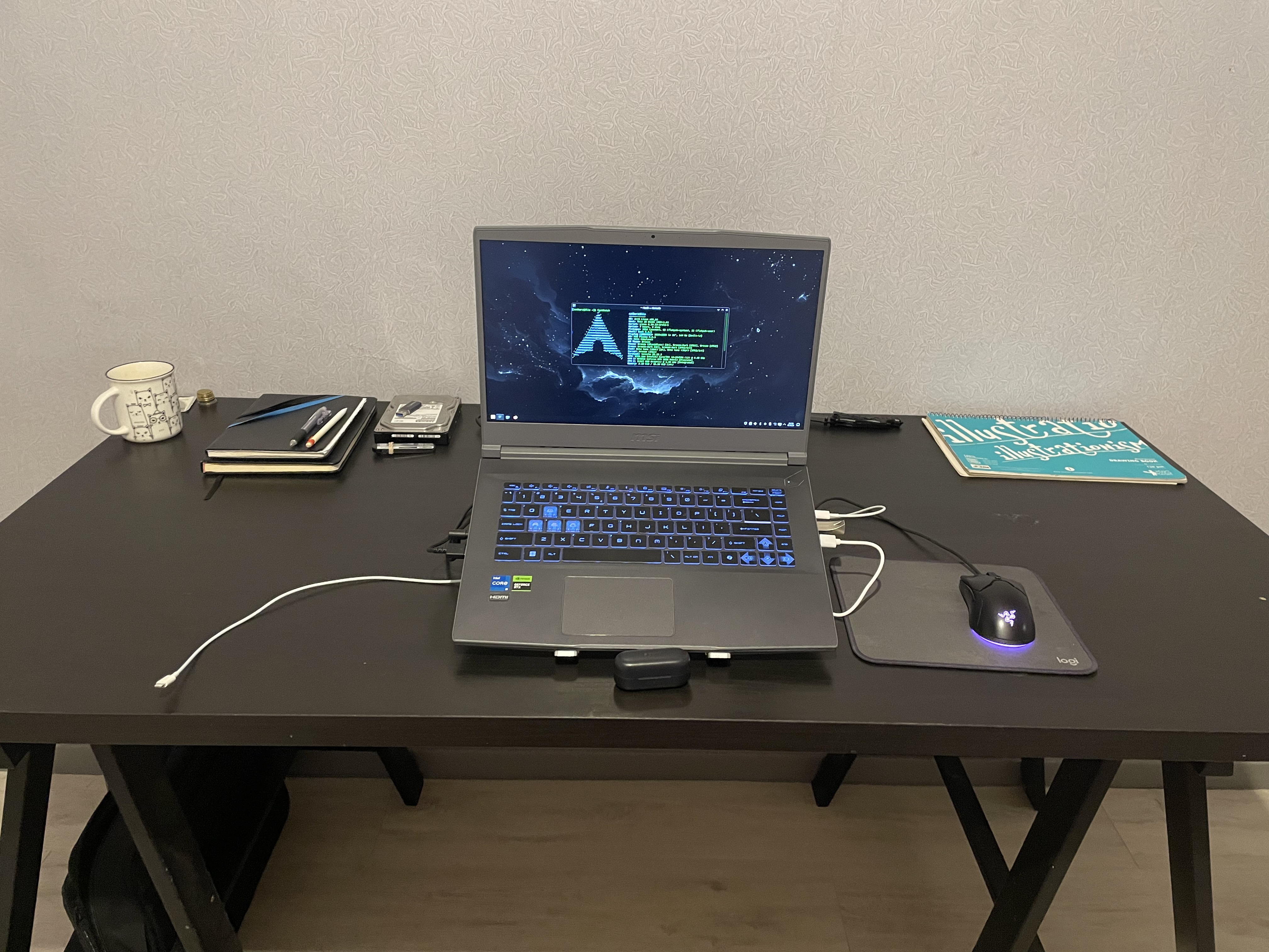 Do you have enough desk space bro? It looks its all barely fitting on the table. Besides that i really like your vertical monitor and the tablet
