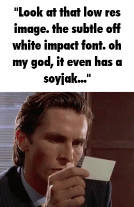 did not think i would see the day 4chan boards would start resembling a facebook feed but here it is. this is some of the most unfunny shit i have ever seen. half of the time the text adds nothing to the image and the sole idea to make memes formulaic is so fucking stupid. i wonder what husk of a soul it takes to enjoy this or let alone create this vile imagery and then i realised that people make it because it's easy. it takes zero effort to make something like this. your shit sucks, fuck you.