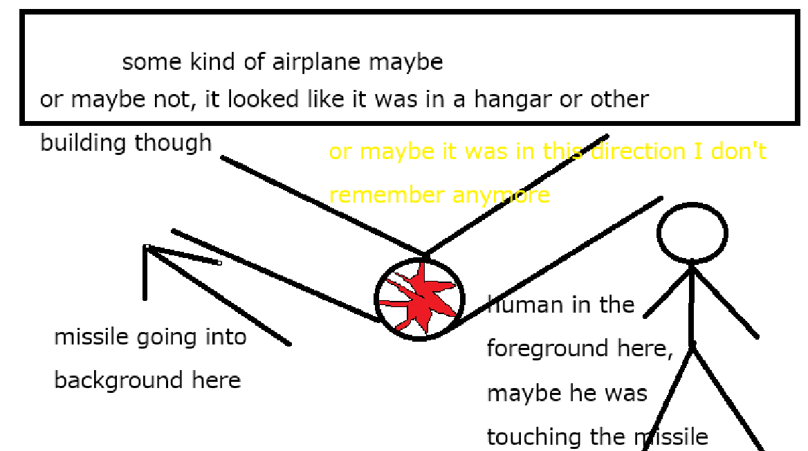 I'm looking for a picture of a missile. It had some kind of red sensor up front that looked like it had spikes going in through the edges. I have attached a picture of what I remember. Please forgive the bad quality, I have an issue with my basal ganglia.The missile was pointed towards the camera, not directly, but similar to what was pictured, with the sensor up front and the rear of the missile going into the back of the picture. I believe there was a human up near the front of the missile, possibly putting his hand on it. I believe it was inside of a building or structure. It used to be posted somewhat regularly on here a while back, but I never thought to save it, and now I can't stop thinking about it. Does anyone know what I'm talking about?