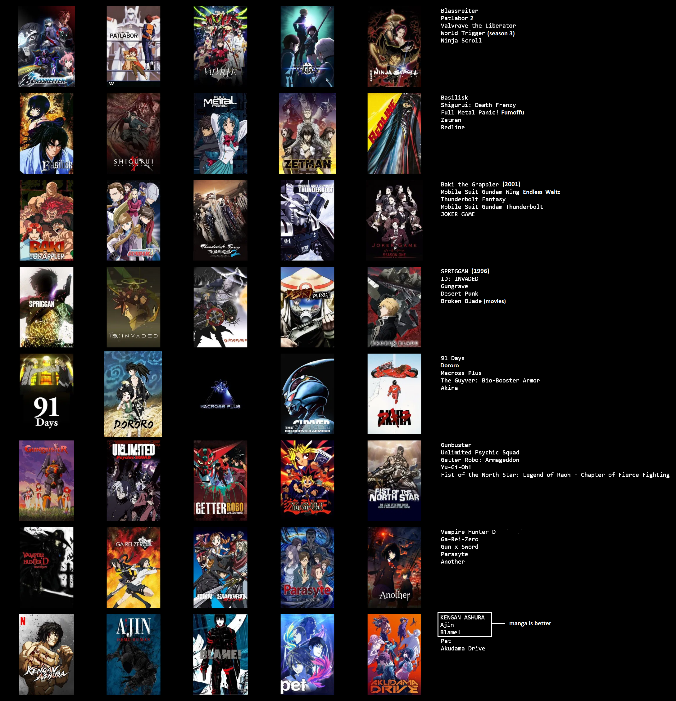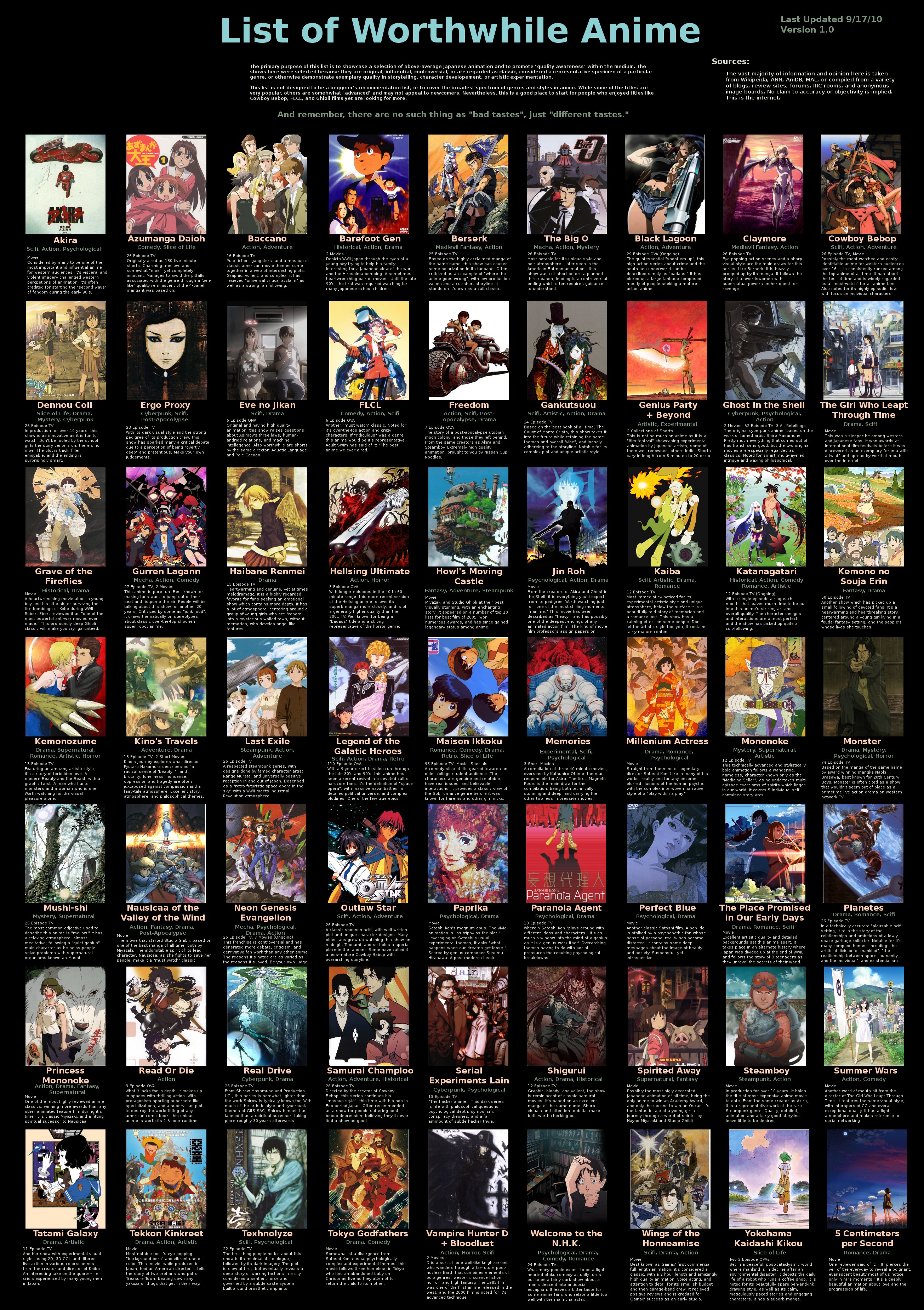 >>1558551>Flcl Haven't watched it in years but it's a pretty good show and a classic. Lots of references you won't get if you haven't watched a bunch of other anime though>Lupin There are like 900 lupin shows and they're mostly good but just putting "lupin 3" on a chart like that is dumb because it doesn't tell people which part of the series to start with>Ttgl Really awesome but I despise the start of the second season where that guy takes control of the city and starts acting like an asshole.>Stand Alone Complex I'm planning on rewatching this because I didn't know what the fuck the characters were talking about half the time lol. There's a conspiracy in a cyberpunk future involving vaccines and a hacker is trying to expose it.>TrigunGreat science fantasy show. Avoid the reboot but badlands rumble is equally good.