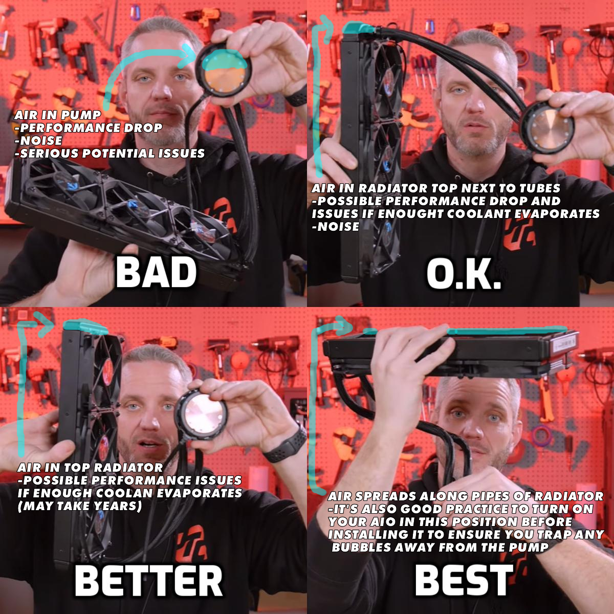 >>1558941Just in case, check the picture for the best AIO fans position. If you change its position but was once in position 1 one, you need to make a previous step where you hold the GPU lower than the fans while powered on and slowly turn it around in different directions in order to let any trapped bubbles reach the top fans through the tubes.