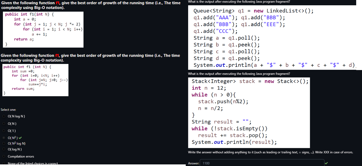 Do any of you have any advice on studying? The exam format is gonna be multiple choice 50 questions in 3 hours. I have 3.6 min per question. I know the obvious advice of just practice questions is gonna come up, but the issue is there was no text book for this course, and very few sample questions(pic related). It was mostly just coding tests and assignments which I did well in. Do any of you know where I could find some more sample questions like these? The prof emphasized time complexity questions as questions that will show up a lot. Any other advice for this would be appreciated.