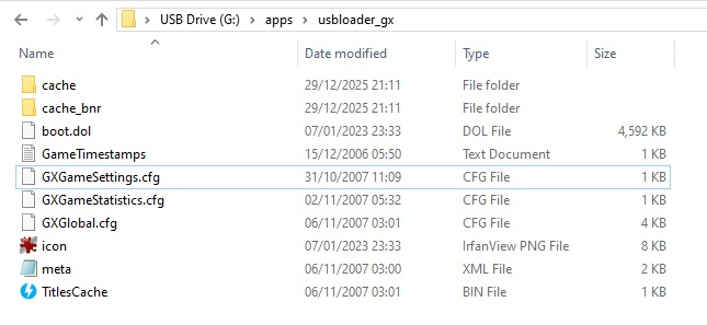 >>1553576It's installed by just placing a usbloadergx folder inside your apps folder. I *think* it doesn't write any settings outside of that folder. A brand new copy of it just has 3 things sitting in that folder, so maybe it needed more than those .CFG files deleted to reset >I'd like to not blindly guessSorry, wish I had a Wii handy to test things. I am just making educated guesses