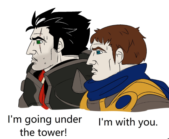 Looking for an old League of Legends meme with Garen grabbing lux by the legs and spinning her while she ults. Causes an explosion that can be seen from space. I think they scream something like Demacia brothers unite.