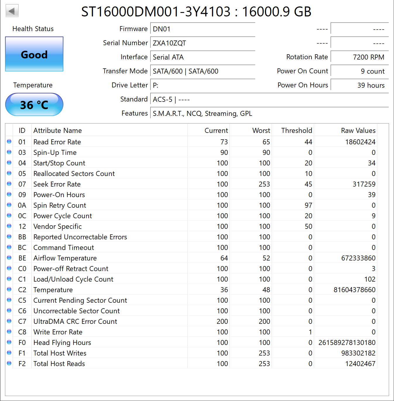 >>1556201Such a thumping by itself is not normal, but it could be that it is caused by the surrounding, i.e. something resonating to the movement. The cause is probably the arm moving which creates a small shock the case reacts to.The disk by itself should not make such deep thumping noises.>>1556252You have quite a few read and seek errors for 40 hours, but at 16TB you also have quite dense surface, so the arm can miss the microscopic spots easily.What he is talking about is 05 and C5.As soon as the first spare sector is used failure is usually not far.