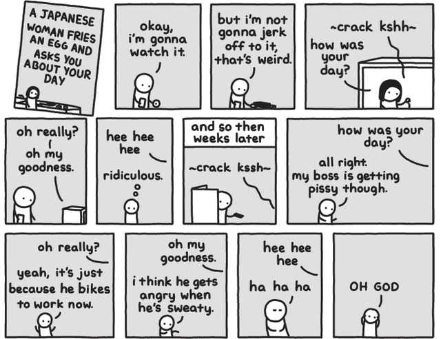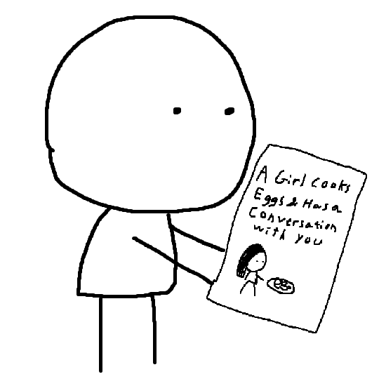 There is a old internet comic, very simplistically drawn, not too long, where a guy is watching a girl on VHS cook eggs or something because he's bored. The girl in the video pretends to have a conversation with the viewer (him). Slowly, he realizes that he's responding to the video and that he's fallen in love with the girl on the tape.