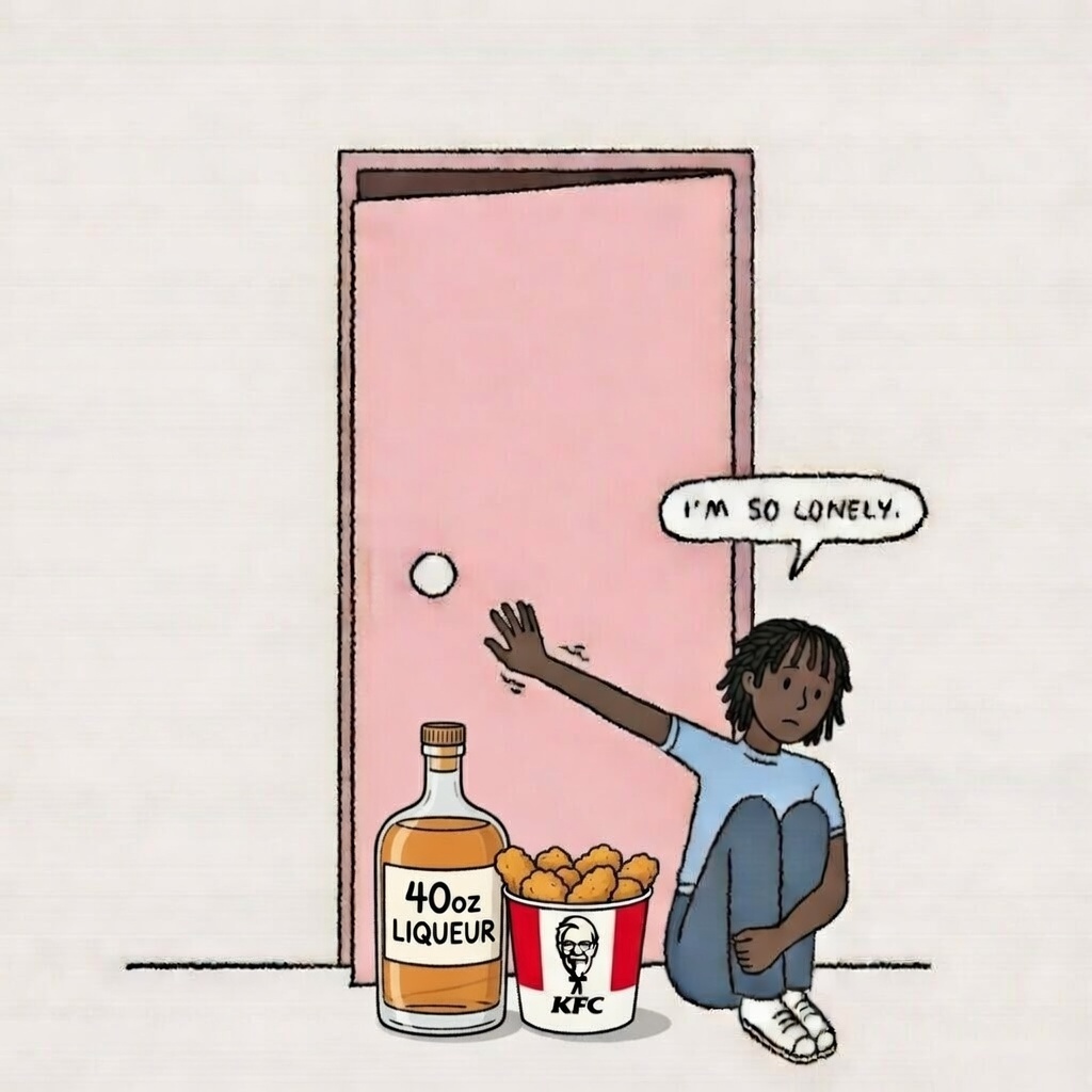 Version of this image that's a black girl with no suitors?