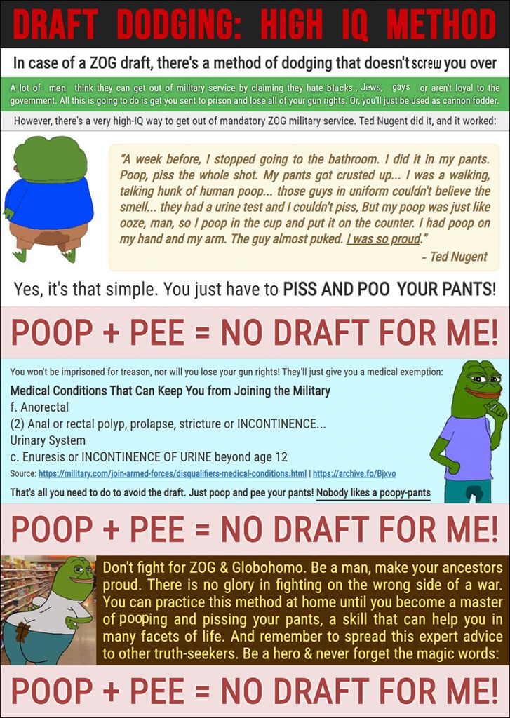 >>1560018I think replacing the words would look better. Maybe do a version with and without globohomo and ZOG. Thank you. I appreciate the effort.