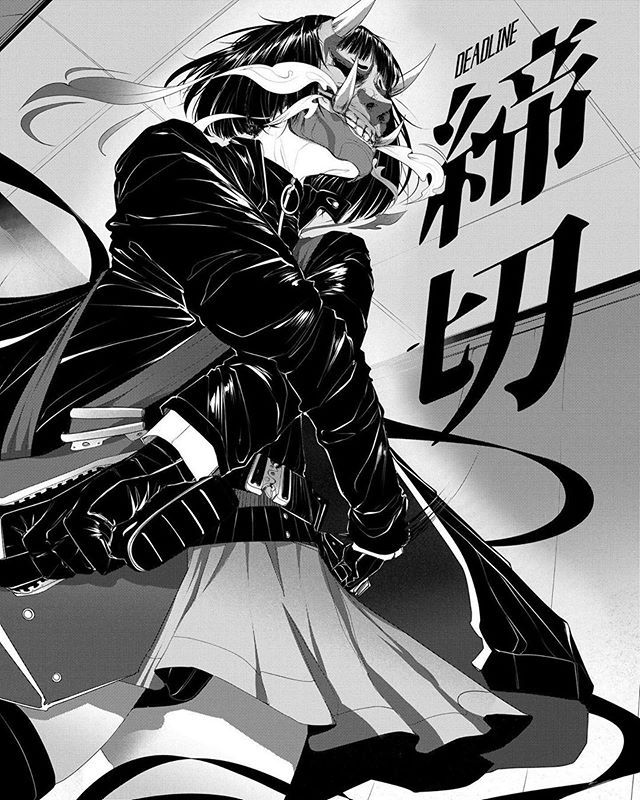 Been looking for a manga I found years ago. The first chapter opened with a dream flashback of the MC next to a field and a big tree. His family was dead and I distinctly remember limbs skewered into the ground by a katana. He then wakes up in the present day and meets up with his partner for his job. He has to wear a mask for his job, I wanna say it looked like a bird mask or something. He and his partner go to some place and see some sort of death match fight club where an audience watches as two people fight behind a large glass pane. One of the fighters is a girl, I think related to his flashback, and he follows her in hopes of answering some questions or something. My memory gets vague after there. Also most vividly I recall seeing an image from a later untranslated chapter of a girl in an oni mask holding a gun and wounded I think. Picrel is the most similar thing I could find but is most definitely not it, the color scheme of the girl was lighter I believe.I could have sworn the title was Sakura no Ou but nothing came up, figured I'd mention just in case though.