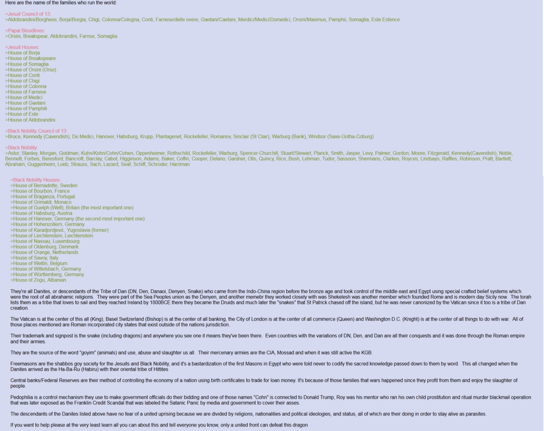 Names infodumphttps://archive.ph/UCbdIhttps://themillenniumreport.com/2017/07/the-holy-grail-of-who-they-are-that-rule-over-us-all-part-i/https://themillenniumreport.com/2017/07/the-holy-grail-of-who-rules-and-controls-all-part-ii/
