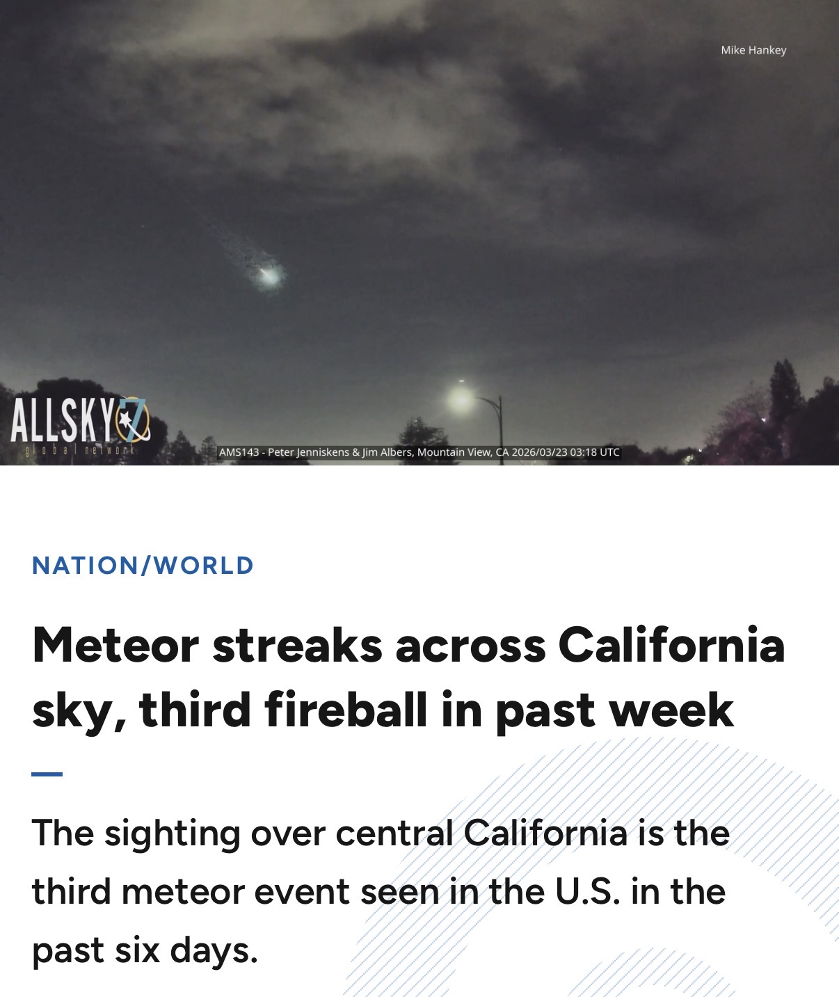 3 meteors and 2 of them creating sonic booms over America in less than 1 week. This isn’t normal despite what the gaslighting MSM is saying so what’s the paranormal explanation? Aliens? Panspermia pandemic attack from breakaway civilizations? God punishing the US for bombing the cradle of civilization? Something else? Post your theories below.