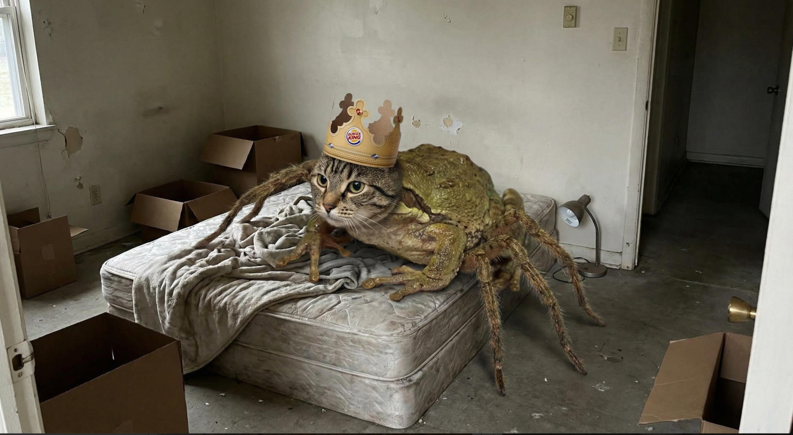 A cat, a frog and a spider