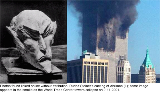 The visage of Ahriman in the debris of the world trade center on 9/11