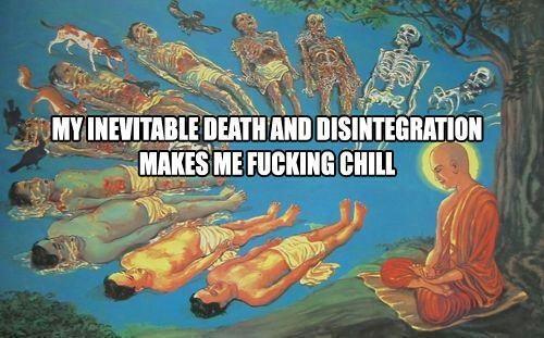 help me accept my mortality.it's the struggle of my life.from the youngest age.the fear is profoundly intense and real. and i am emotionally, spiritually, and mentally fucked from years of traumatic abuse. what occult/meditative/philosophical/alchemical framework can help?