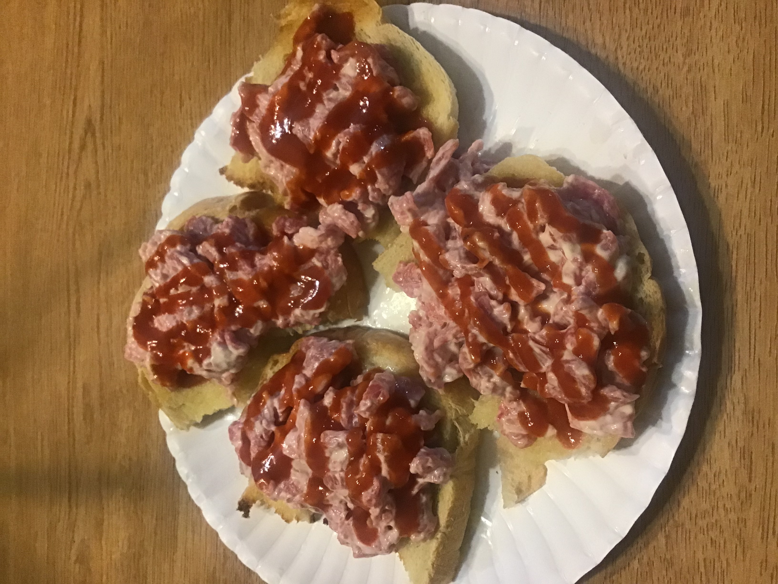 I make this pretty regularly Raw ground beef from the store, sriracha, avocado oil mayonnaise Yes, there is the incentive to get attention by doing something really weird when your eating raw ground beef, but I also unironically love this shitAnd then potatoes raw milk and kimchi. Don’t let any of these carnivore fags tell you you can’t eat vegetables, you can and should. Both carnivore and vegetarian diets seem to produce pretty instantaneous results because American bread is poison, so any diet which keeps it away from you is in essence a miracle diet. Keep it simple, keep raw single food items from each food group around the house, and let your cravings be your compass. No diet restrictions requires. You’ll end up with mainly meat, starch, and occasional veggie, and also fruit.