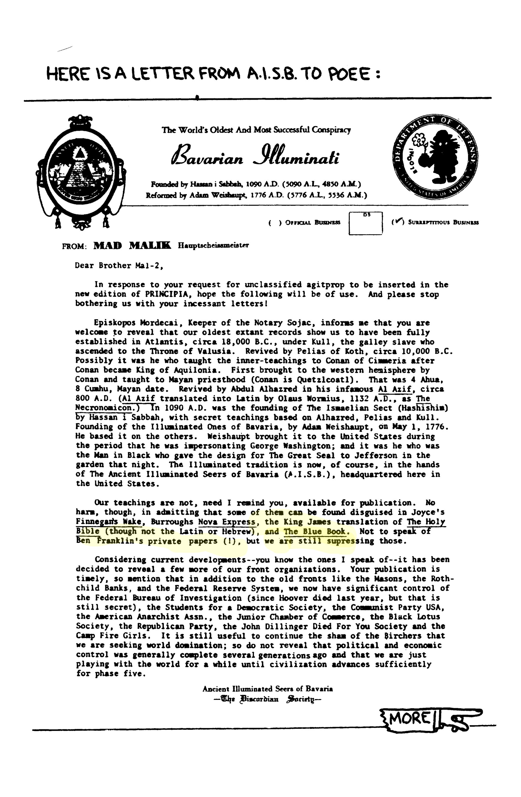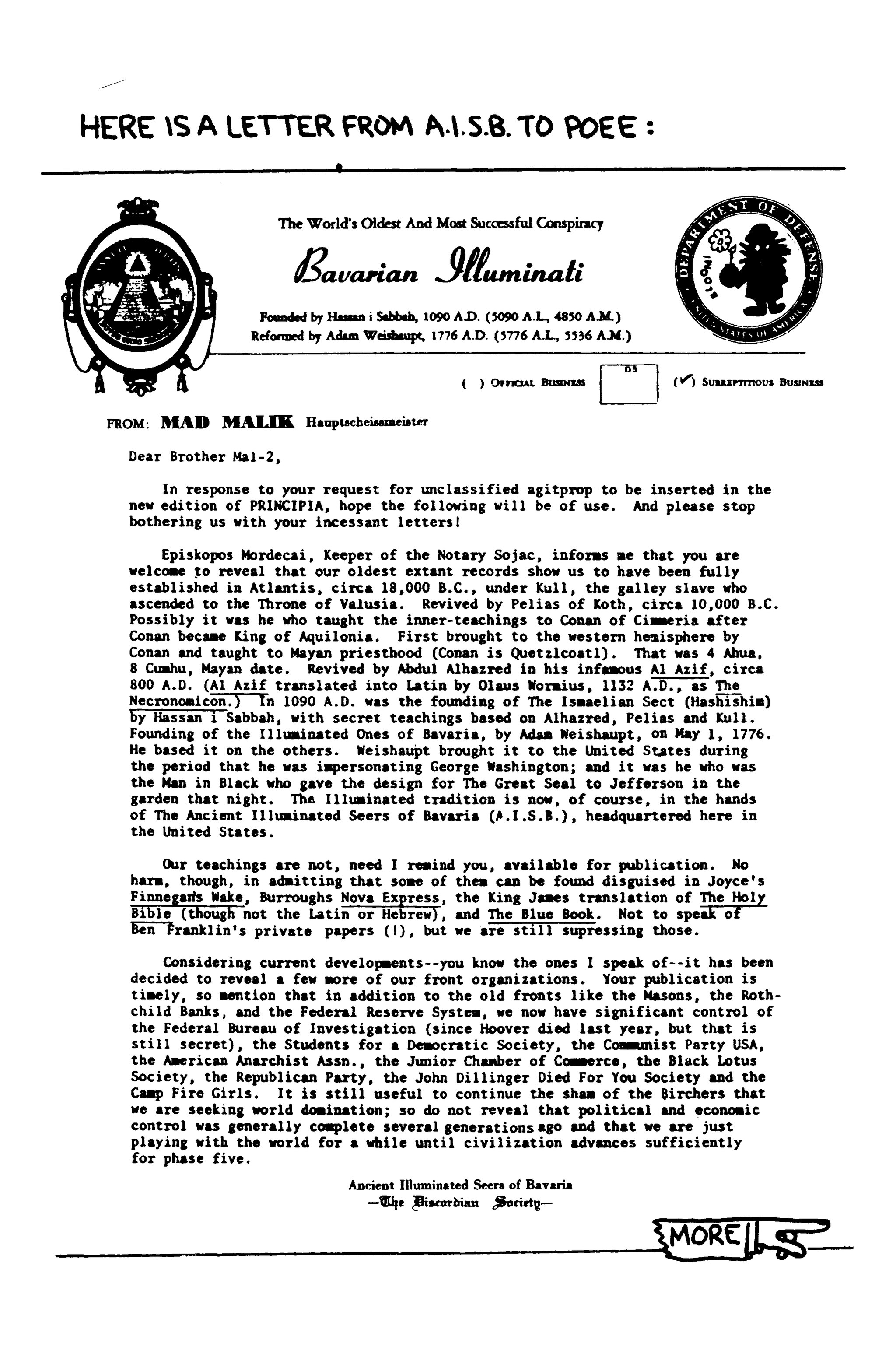 >>41326715"Since the Babylonian Captivity there has existed a determined, behind-the-scenes under-the-table, atheistic, satanic, anti-Christian force—worshippers of Mamon —whose undying purpose is world control through the control of Money. July 1, 1776 (correct that to May 1st, Vennard can't get anything right) the Serpent raised its head in the under-ground secret society known as The Illuminati, founded by Adam Weishaupt. There is considerable documentary evidence to prove all revolutions, wars, depressions, strikes and chaos stem from this source.” Etc., etc., you know the stuff.The general location of our US HQ, incidentally, has been nearly exposed; and so we will be moving for the first time this century (what a drag!). If you want, you can reveal that it is located deep in the labyrinth of sewers beneath Dealy Plaza in Dallas, and is presided over by The Dealy Lama. Inclosed are some plans for several new potential locations. Please review and add any comments you feel pertinent, especially regarding the Eristic propensity of the Pentagon site. [All this is to say they still have enemies but these enemies are not the general public as they are already controlled as seen by letter one. The Dealy Lama would not align with mometary control, yet we see such a force today, with the attempt to force CBDC and other financial and digital corruption schemes.]5/?
