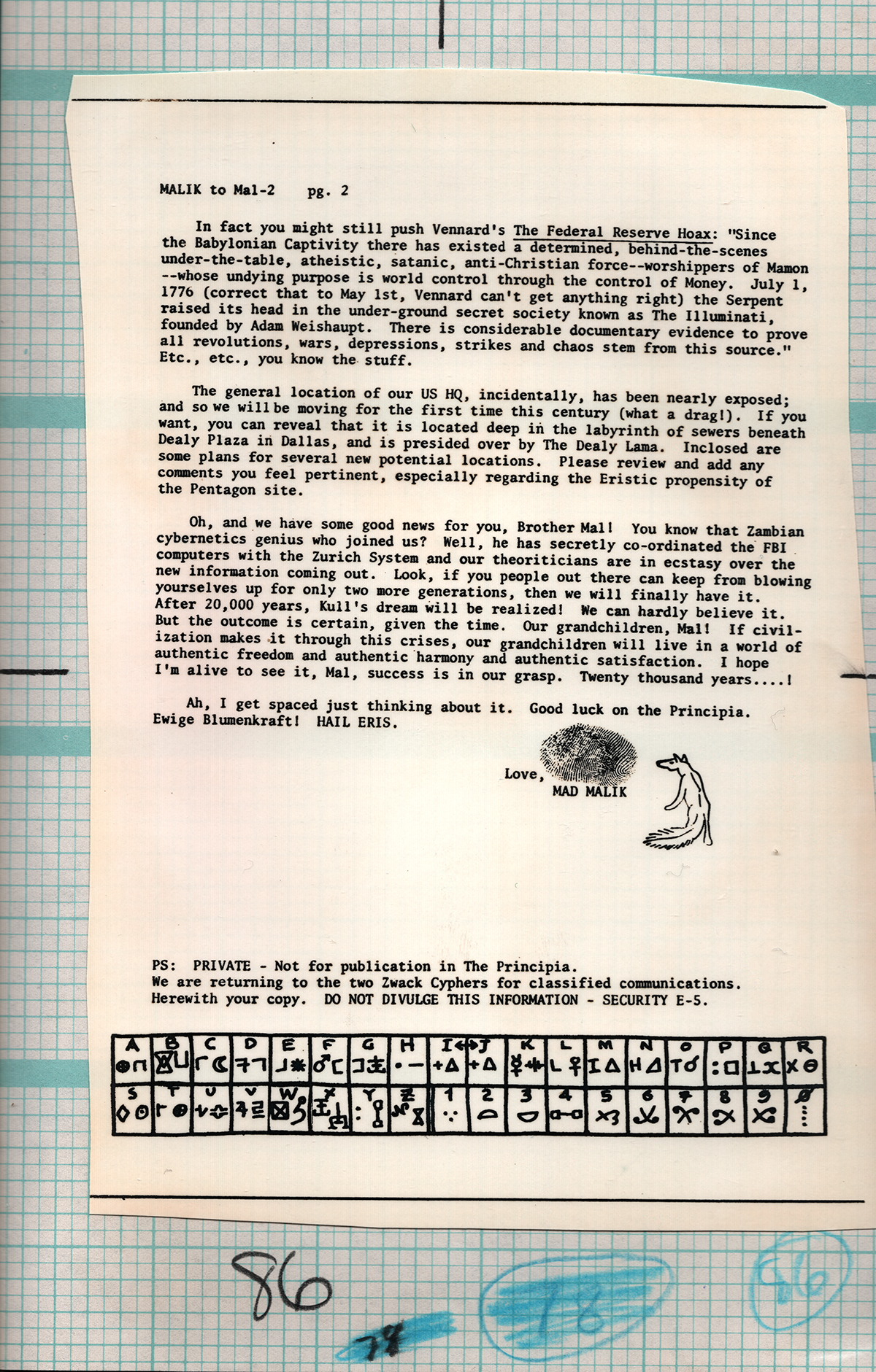 >>41326415Let's move onto letter two.Ignore the cypher, it's a red herring.In fact you might still push Vennard's The Federal Reserve Hoax: [Note he refers to this view as a hoax but does not specify who spawned the hoax; thus we must exhume the buried truth ourselves. The only ones with the means and motive to create such a hoax would be those who the 'hoax' describes, excluding actual connection with illuminati. In other words, the claim in that the illuminati is not as described by the hoax framing them for these misdeeds. There is another force at play.] 4/?