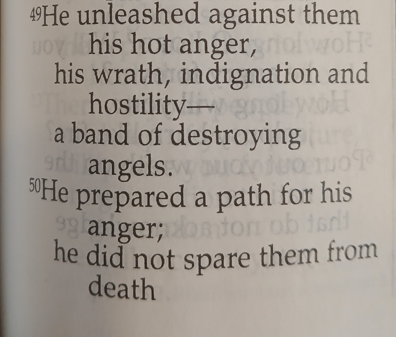 An angel of the Lord descended and began to act awkwardly as the hearts of man are full of evil thoughts and desires at all times.