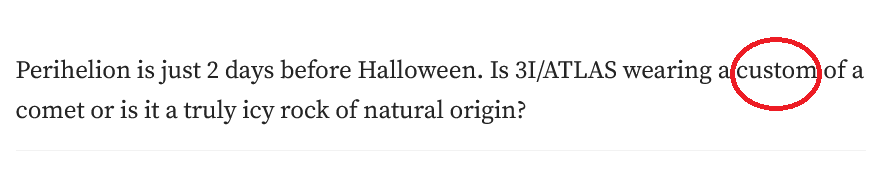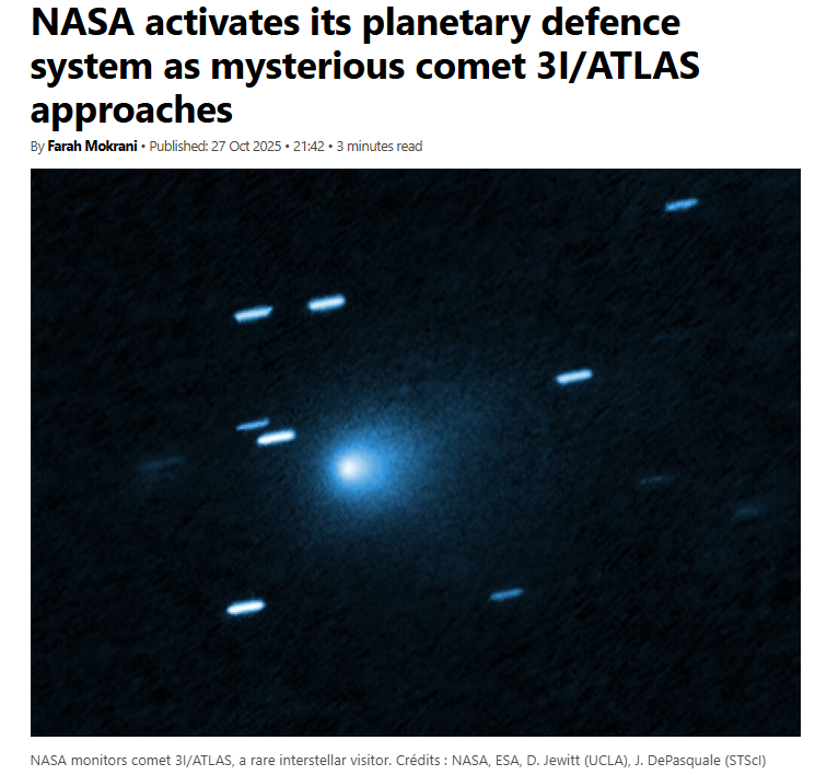Just a puny little comet chuds, absolutely NOTHING to see here. Don't fall into conspiracy theories. Oh, why are we activating our planetary defense systems? I-It's just a nice moment to test stuff that's all! You're noooticing too much, maybe it's time for a nap lil brohttps://euroweeklynews.com/2025/10/27/nasa-activates-its-planetary-defence-system-as-mysterious-comet-3i-atlas-approaches/