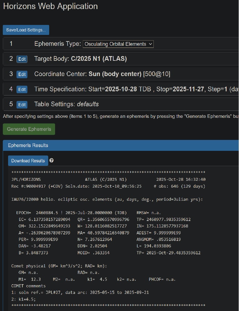 >>41369016NOT "currently unobservable, behind the sun" as NASA and even Avi are parroting. You can watch it a perihelion tomorrow!!!For Amateur Astronomers:- Location: Constellation Virgo- Current Position (Oct 25): RA 13h 38m 44.9s, Dec -07° 40' 32.5"- Magnitude: 15.00 (requires telescope, 6-inch aperture minimum recommended)- Best Observation Time: Early morning before sunrise, late evening after sunset- Reference Star: Spica (bright blue star in Virgo for positioning reference)_ What to Document?1. Precise position measurements (RA/Dec) with timestamps2. Magnitude estimates3. Visual structure (any geometric patterns, color distributions)4. Any changes over multi-hour observation periodsThen Compare your measurements to JPL Horizons predictions: https://ssd.jpl.nasa.gov/horizons/app.html