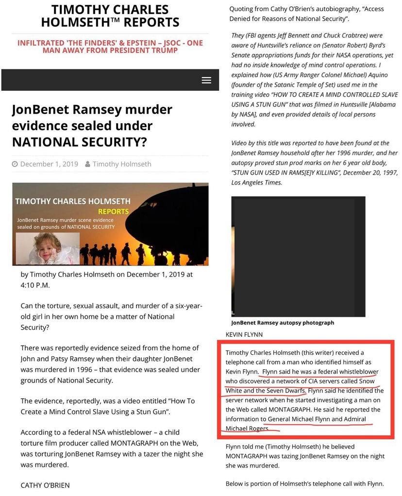 She was part of an intergenerational cult family. "The Illuminati" for NPCs here. I could tell you all about it from first hand experience. Seeing is believing. The stun gun. She was an MPD slave. "They" have been doing this to their children for thousands of years, but their methods are sophisticated now. Sometimes, a child dies during programming. This causes a shit storm of media attention because these people are VERY wealthy and powerful as a rule. Their connections run deep into the government, and all sorts of other places. You can call me a schizo. I don't care. If you know, JonBenet is just another case of something happening in secret, and is intimately linked to how power stays in control. This is intergenerational and wider spread than you realize. "Satanic" "ritual" "Abuse." It's not bullshit. It's not just here. It's been here, dude. These people don't get caught because essentially, they're probably the descendants of "the nephilim." They see themselves as gods, and that's how they stay very powerful. Their methods of control are definitely as brutal as those of real gods. Most of us meet it as "the system." They run it. No matter where you live. If you have internet and running water, they own you. You just don't realize it. And because you don't realize it, you won't actually deny them consent when they come to liquidate you. Life is a giant iTunes ELA. You probably didn't read a word of it before you said "agree" and submitted your name.