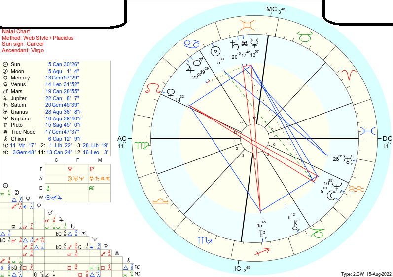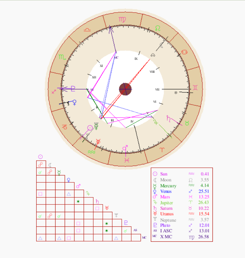 >>41374316Some might recognize my chart. I've heard mostly bad things about it, or those who say it's interesting or that they don't really know what to make of it. (or just go on about Saturn/Pluto, which are malefic and crucial in my chart admittedly, but nothing more than that)I am personally looking for advice on what transits I should be aware of that are positive or life-changing. (good and bad change, just any change please)I don't need a reading or interpretation of my chart unless you have an observation you'd like to share, otherwise I'd just like some insight on what I just stated above. Thank you.