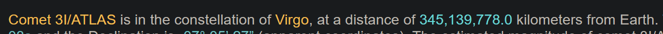 Did 3I/Atlas slow down? At its current consistent speed it willl take it will take it 221 days to reach us.