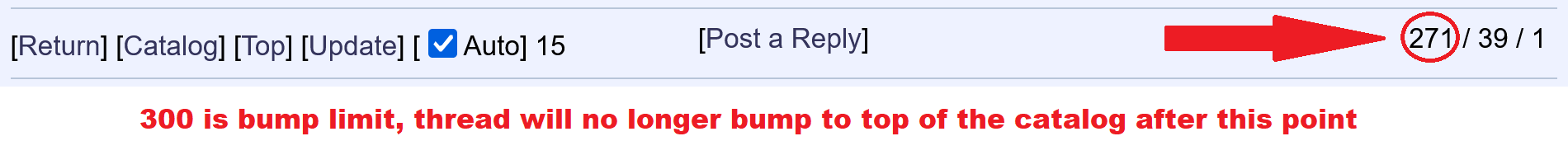 >>41375668 If the post number is in the reds the bump limit is reached. It could be 300, 305 or 350 here or something