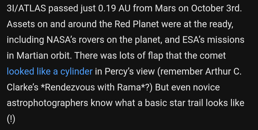 It's weird being in the know and reading the normie astronomy articles. You can more clearly see what they do.Pic related just totally ignores and doesn't mention HiRise. This article also mentioned the anti tail but the accompanying image shows the tail pointing towards the sun which appears to be some intentional muddying.