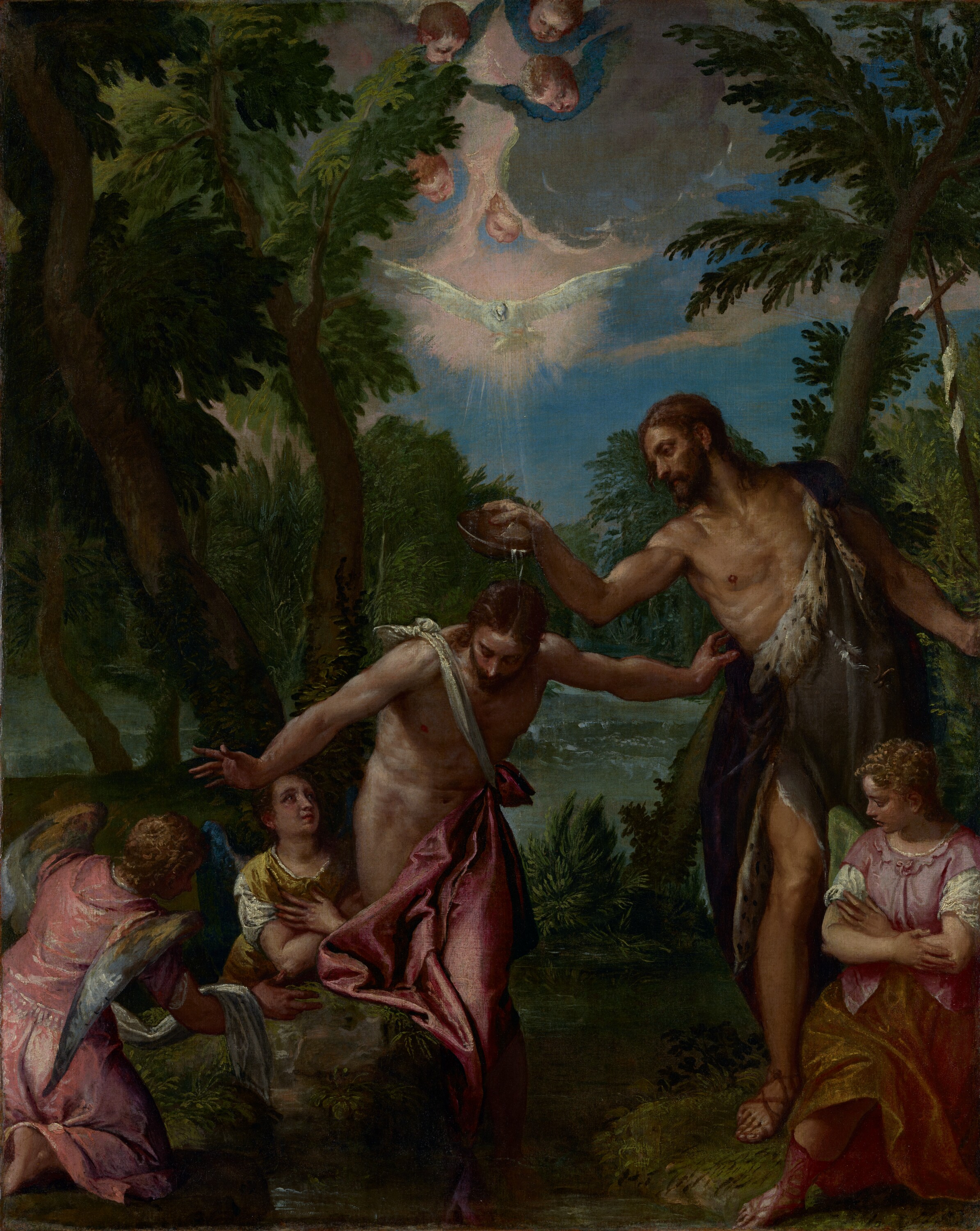 The Baptism of Christ by Andrea del Verrocchio and his apprentice, Leonardo da Vinci. c.1472