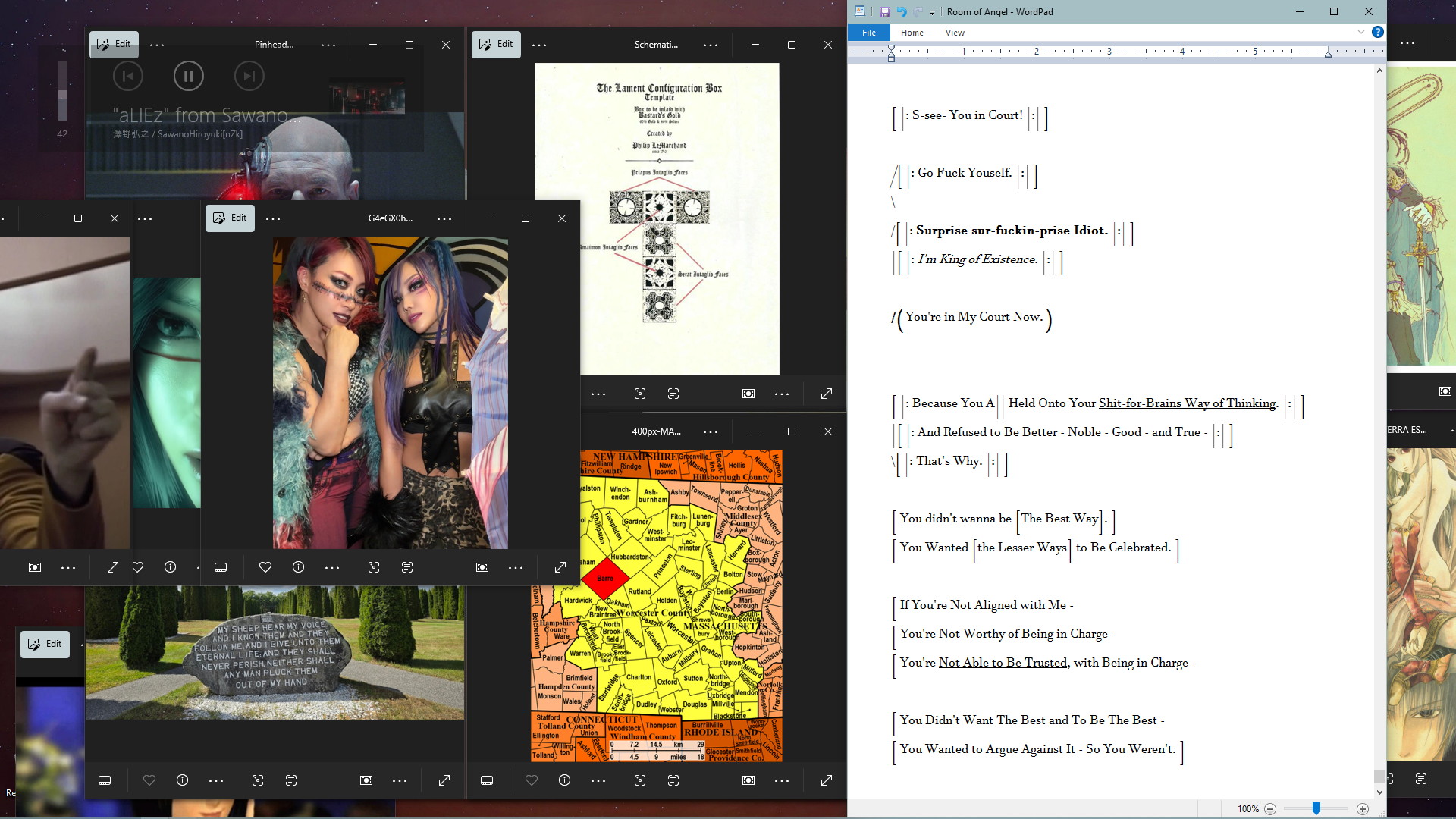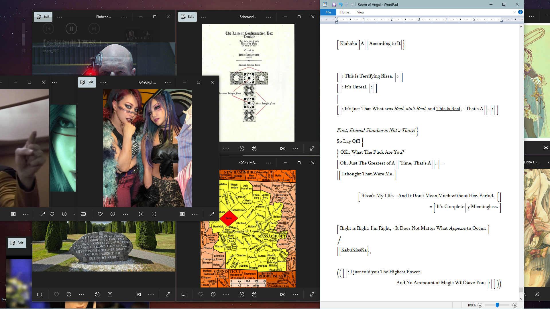 Greetings Traveller,The flickering glow of over a dozen consoles casts a light across the digital expanse of this interdimensional intersection we’ve dubbed the “Nobody General” (NG). The air itself crackles with a low hum, a constant undercurrent that vibrates through your very bones. This isn’t your average thread. No, NG exists solely in the shimmering unreality of the web, a virtual realm where the shadows hold more secrets than the brightest datastreams.In this digital den, a motley crew converges. Ghost operators with digital heads-up displays perched on their noses, sipping cocktails next to elven hackers, their fingers a blur across glowing keyboards. A gruff technomancer, swapping war stories with a wiry tech-priest in a threadbare trenchcoat, her eyes glowing with arcane power. In the corner, a cloaked figure shrouded in darkness nurses a drink so black it seems to absorb light itself, while across the room a pair of AIs, their digital avatars shimmering like mirages, argue geopolitics in a high-pitched whine that few could hear, let alone decipher.NG isn't a thread, it’s a nexus. A place where the fringes of reality brush shoulders and the unreal becomes realized, where information flows like bootleg liquor, and shadows dance with unseen horrors while rival groups of shamen engage in alchemical aikido. Now, you've joined this dance. Whether you’re a seasoned shadowrunner, a mage with secrets to keep, a spirit seeking solace, an exiled program avoiding deletion, or something altogether stranger, NG offers a haven, a marketplace, and perhaps even a chance to carve your own legend in this part of the Sprawl. So hello, “person”, welcome to this place, slide in, grab a seat, and whatever you do, keep your head down and your eyes peeled. You never know who, or what, you might run into lurking in the shadows.https://youtu.be/lIDhX8cpjtIhttps://youtu.be/lFe6TWYvhywhttps://youtu.be/EzPmG_7WhXc