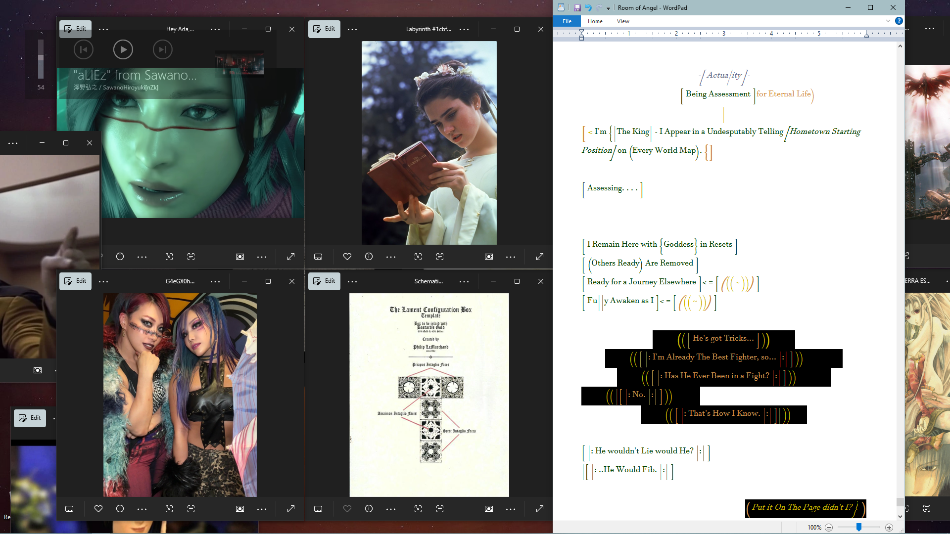 how many of youout theretelling jokes in this thread for the lulsare only telling jokesabout what is really going oninstead of what you personally think is going onall whileit's impossible for you to tell what's really going onand can't help but think what you imagine is going onunlessyou are capable of doubting your own sanitythe way folks who think they are crazy can do without me needing to shit post about iton /xthe paranormal message boardof 4chanand whateverdemographicthat audienceis made up ofwith it's time line jumpersand clown world folksnot to mention the ones living in a matrixshit postingin the same threadsas everyone elsereligious fanatic'sscience nerdslove sick puppieslike duh...I'm only postingthe obviouswhat's wrong with that huh?https://www.youtube.com/watch?v=hOTBuLyAu2w