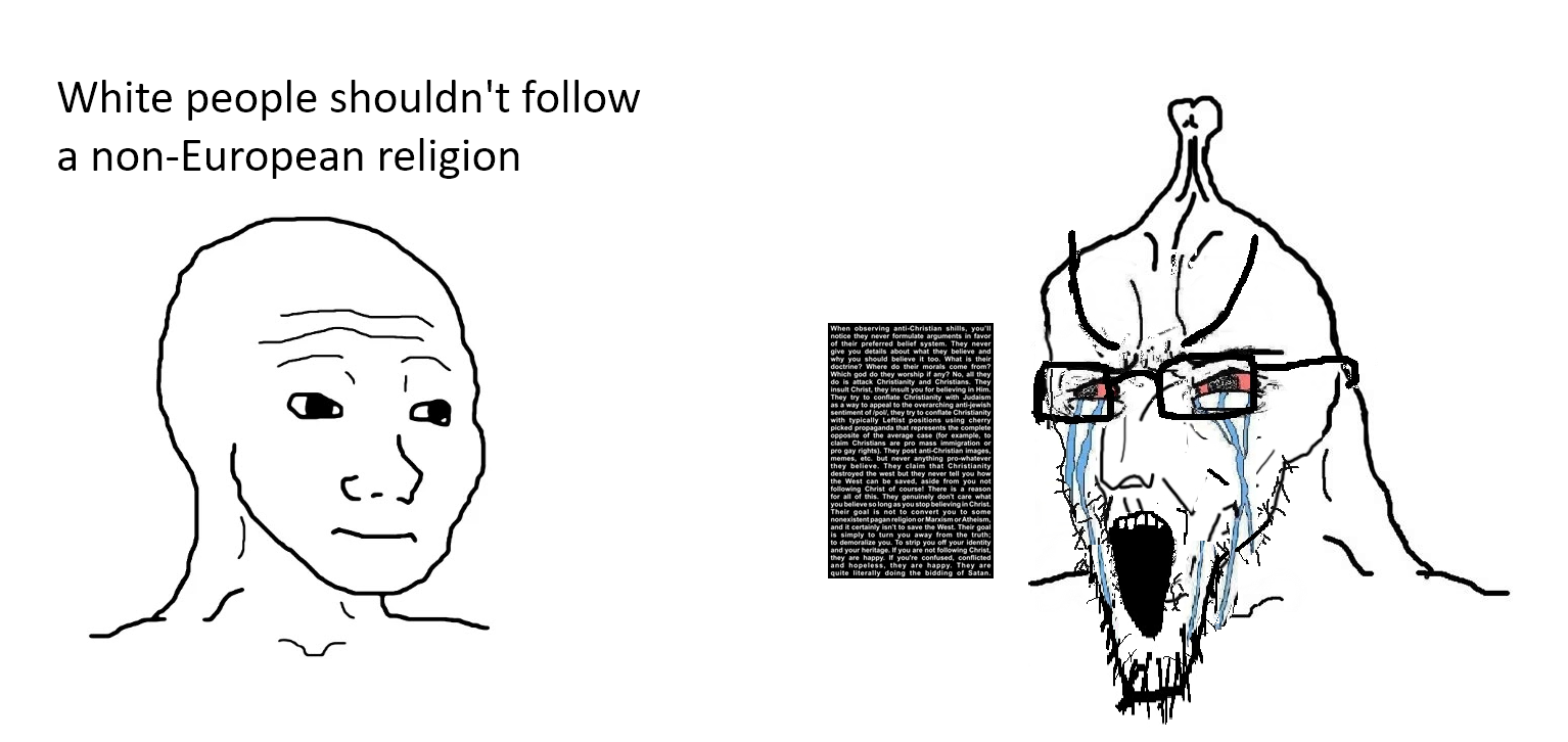 >>41409811>you're a jew,>you're a larpagan,>you're an atheist,>you're a jeet,>that's not real christianity,>Those weren't jews those were israelites,>modern jews and ancient jews are not the same.>reddit>no rebuttal, just ad hom