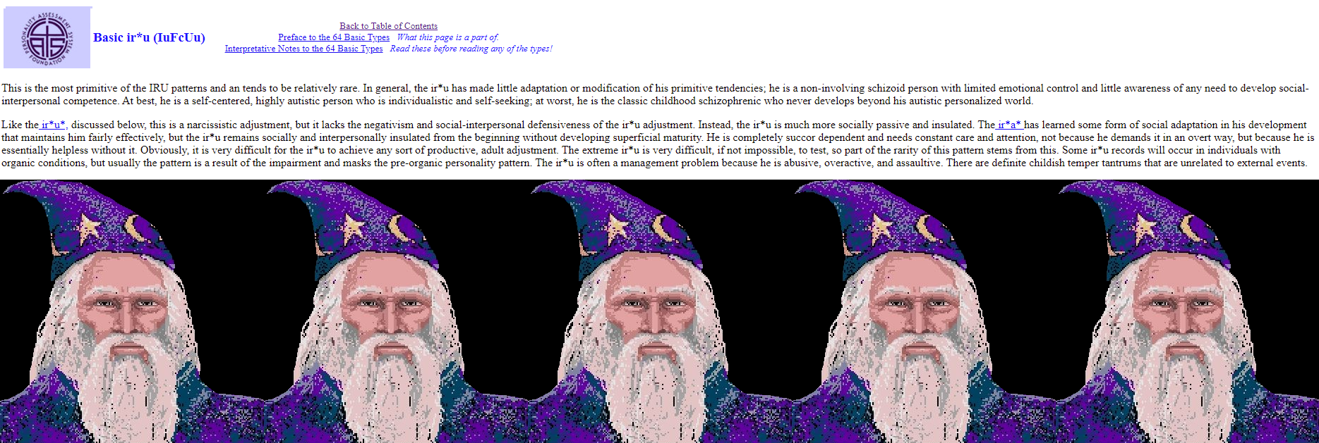 https://www.pasf.org/impressionistic.htmThis shows the clusters in a more neutral light. Both positive and negative. The types page posted by op was written in a more negative light. Even their at best scenarios often describe worst case outcomes