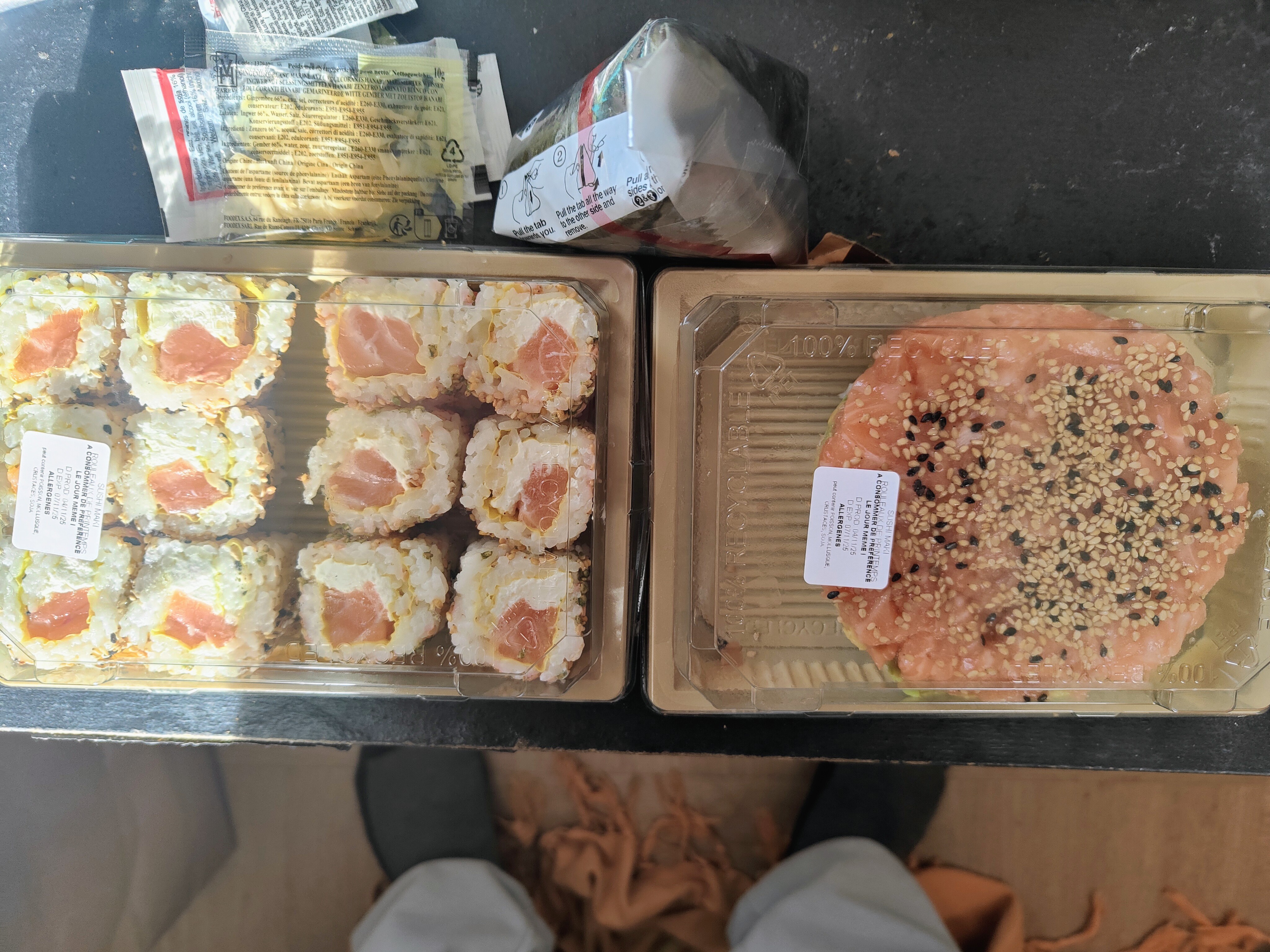 Cheese rolls, tartare and onigiri for lunch.
