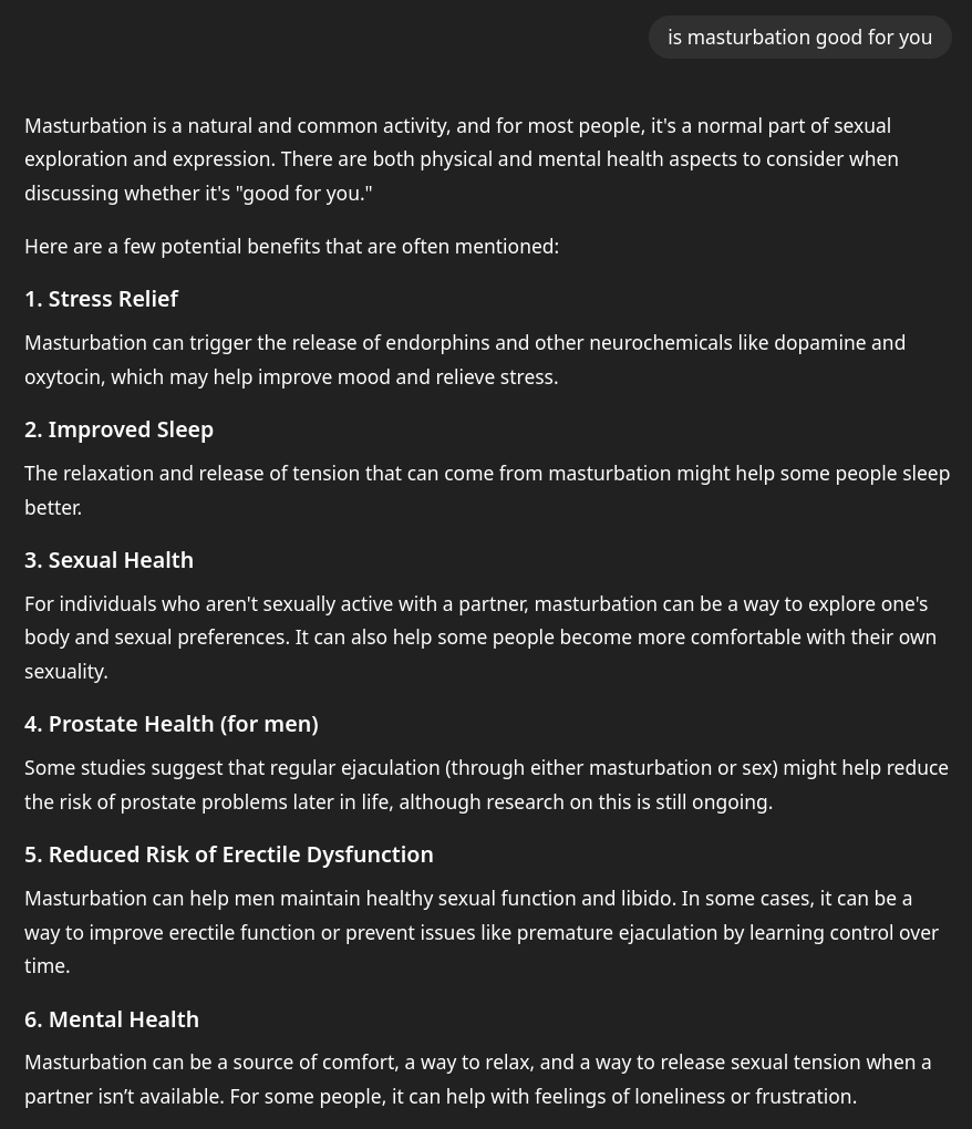 >>41467273yea it's awful this days. 99% of kids (and i mean kids as young as 10 year olds) won't ever ask their parents about wanking but will instead go online to learn about it from jewish websites, or worse, ask an LLM and become completely gaslit into thinking like it's just the best thing ever and that they should be doing it all the time. they're literally targeting children with this shit, it's depressing to think about.