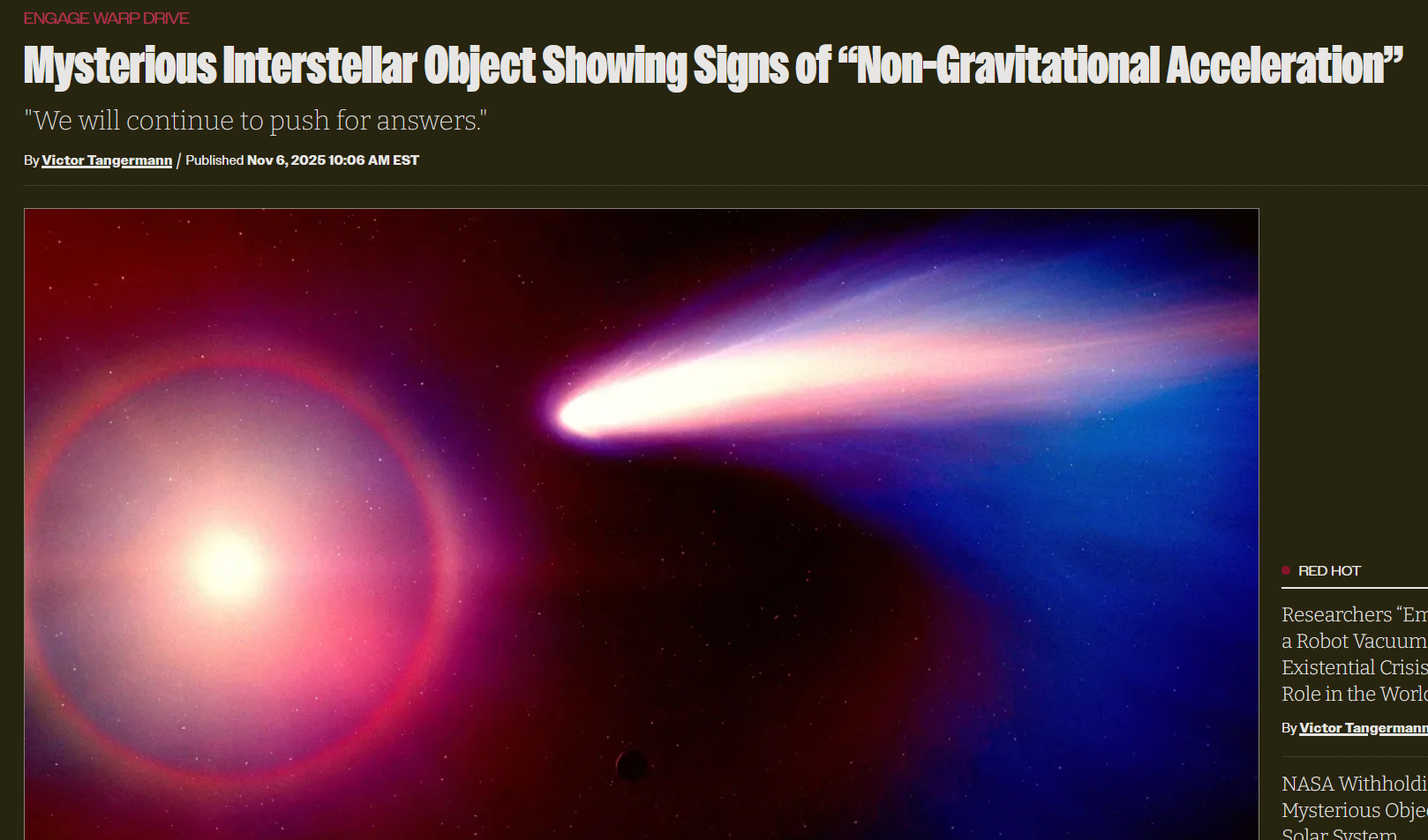 If it wasnt a comet it wouldnt have had jet trails. Now this confirms the object is not technological in any way.
