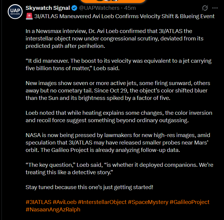 https://avi-loeb.medium.com/a-complex-jet-structure-emanates-from-3i-atlas-after-perihelion-1cc7f8ec7b81