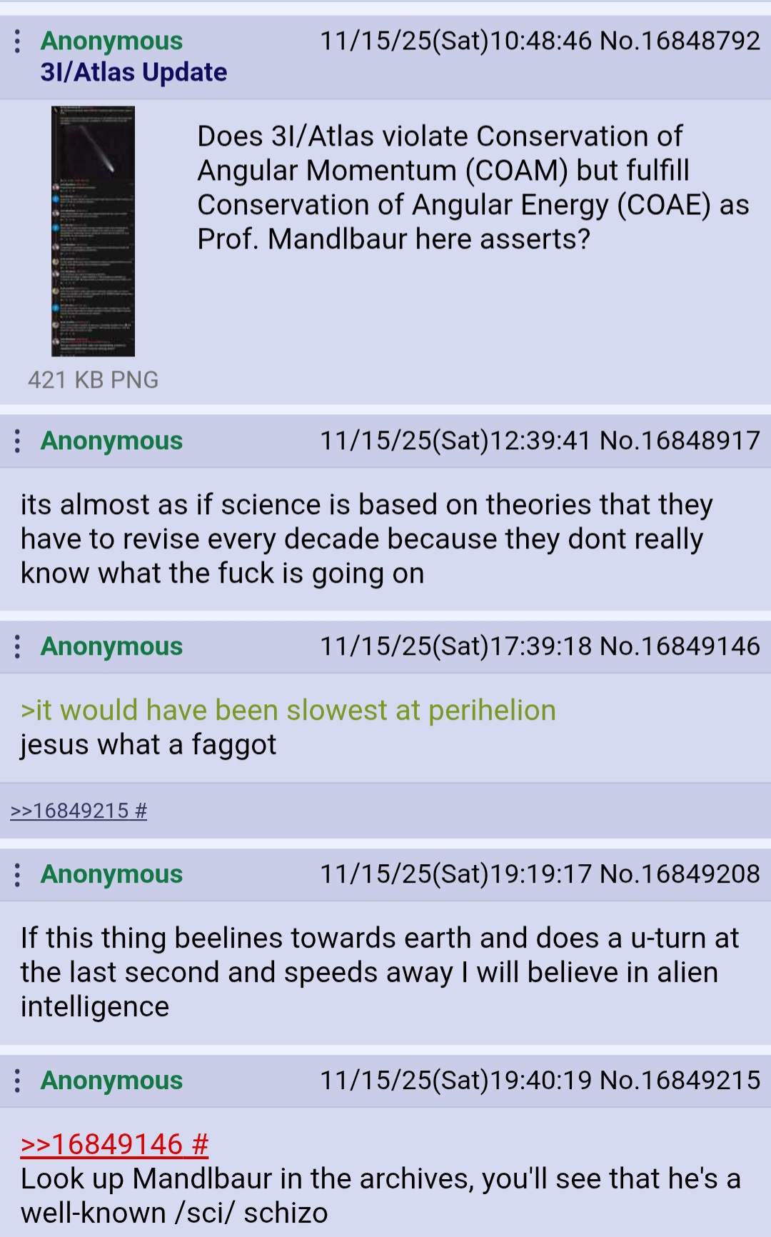 THREADLY REMINDERIgnore the shills. If 3I/ATLAS is 'just a rock/comet' then their shilling would be unnecessaryask yourself, why would they be so interested in what a bunch of schizo internet retards think on a mongolian fish farming forum?