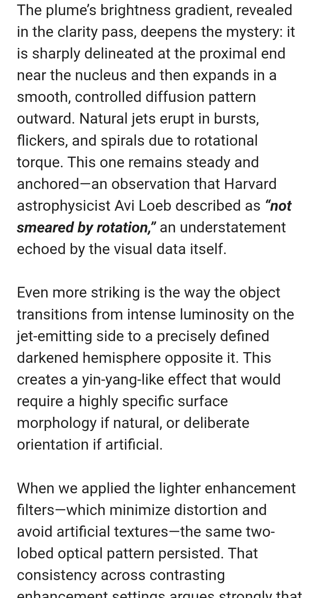 >>41495268It can't be rotating. Its literally impossible. The "Jets" do not rotate. Especially the one in the front. If it rotated those jets would rotate also but they never do, they stay stable somehowIts wierd. Definitely not a comet. maybe something exotic