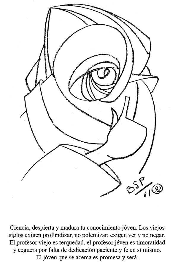 >>41496543>>41496428>(1961) Science, awaken and mature your young knowledge. The old centuries demand introspection, not polemics; they demand seeing, not denying. The old professor is stubbornness, the young professor is timidity and blindness due to a lack of patient dedication and self-belief. The young one who approaches is a promise and will be.