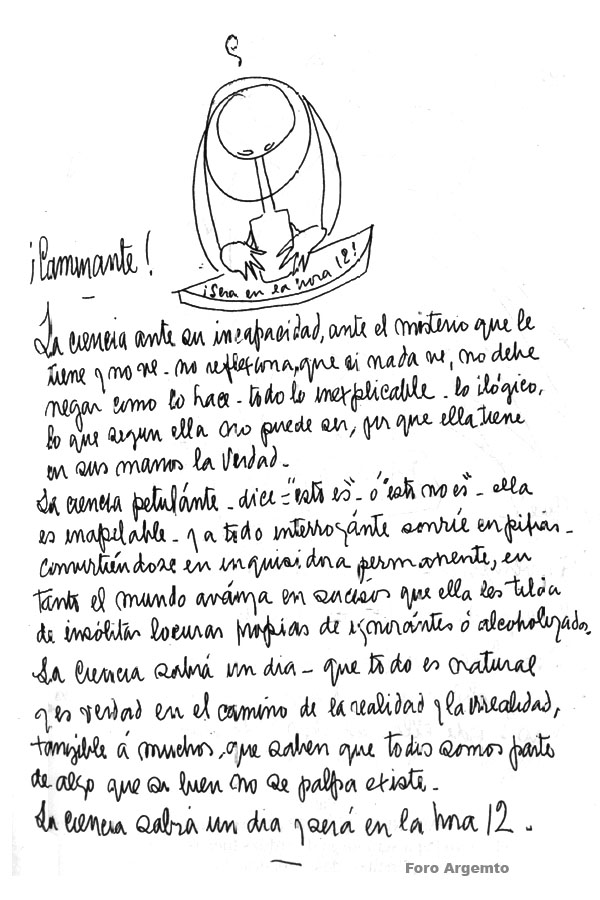 >>41496753>It will be at the 12th hour! Traveler! Science, faced with its incapacity, with the mystery it holds and cannot see, fails to reflect that if it sees nothing, it should not deny, as it does, all that is inexplicable, illogical, that which, according to it, cannot be, because it holds the Truth in its hands. Petulant science says, "This is" or "This is not," it is unappealable, and to every question it smiles in blunders, becoming a perpetual inquisitor, while the world advances in events that it labels as unusual follies typical of the ignorant or the intoxicated. Science will know one day that everything is natural and true on the path of reality and unreality, tangible to many who know that we are all part of something that, although untouchable, exists.Science will know one day, and it will be at the 12th hour.The 12th hour is the doomsday clock