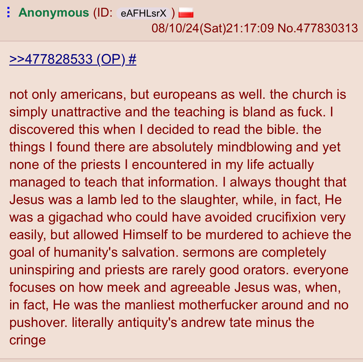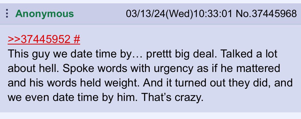 >>41495173I agree, it comes down to context on when to take things seriously, if there's a serious lack of context, or it doesn't really involve you directly, ur better off just having a laugh, and moving onto better things that needs your serious attention>>41495176Holy based, indirect reply anon