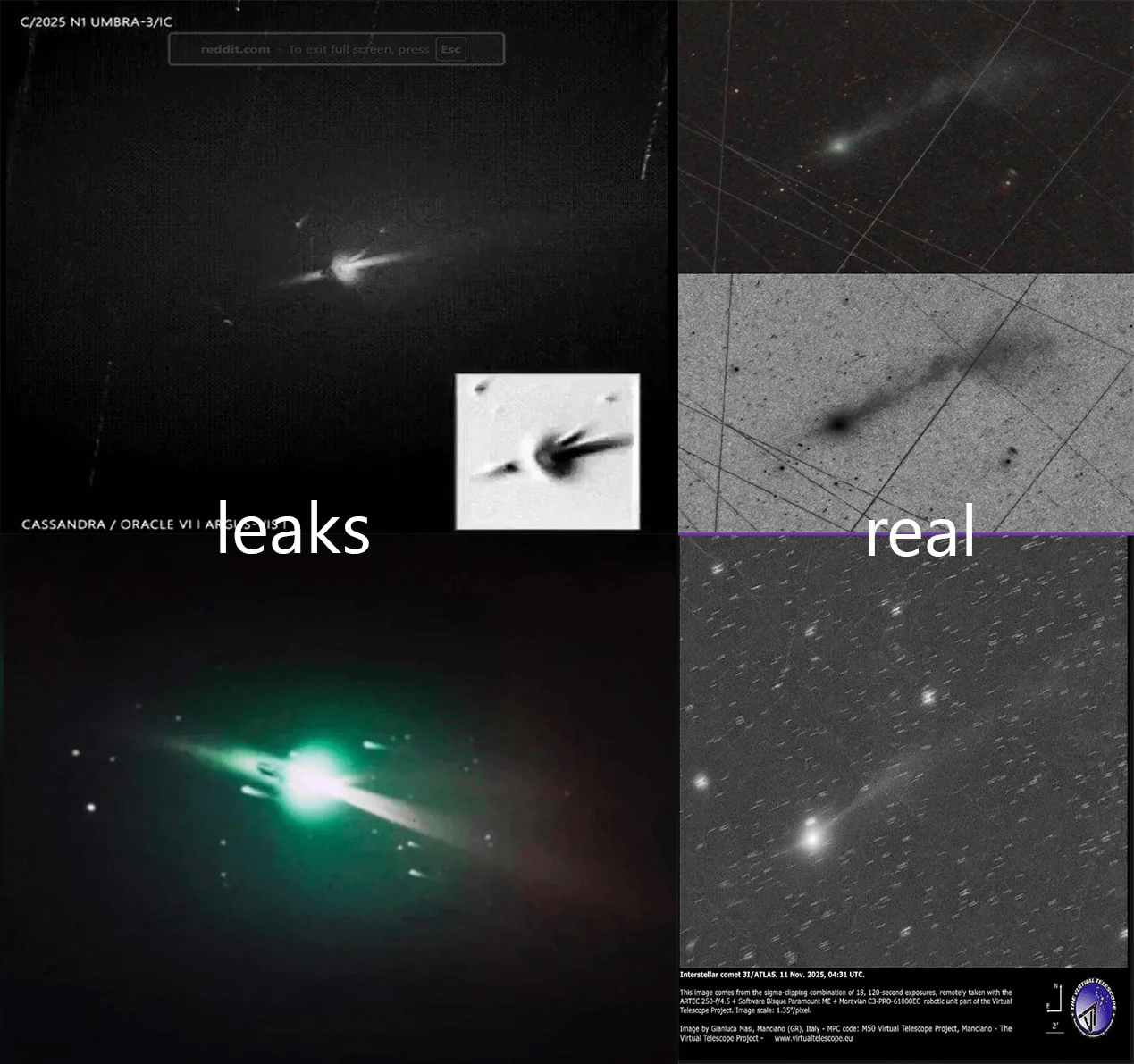 Previous: >>41522475>Trackers:https://theskylive.com/3dsolarsystem?objs=c2025n1https://ssd.jpl.nasa.gov/tools/sbdb_lookup.html#/?sstr=C%2F2025%20N1&view=VOP1.Retrograde orbit aligns within 5° of the ecliptic; probability 0.2%.2.July–Aug + early Nov 2025: showed a true sunward jet (anti-tail), not a geometric illusion.3.Nucleus mass ≈106× 1I/‘Oumuamua and 103× 2I/Borisov, moving faster than both; probability <0.1%.4.Arrival timing placed it within tens of millions of km of Mars, Venus, Jupiter and hidden from Earth at perihelion; probability 0.005%.5.Gas plume: far more Ni than Fe (industrial-like Ni alloys) + Ni/CN ratio orders of magnitude above all comets incl. 2I/Borisov; probability <1%.6.Gas plume: only 4% water by mass (vs water-rich normal comets).7.Extreme negative polarization, unprecedented; probability <1%.8.Arrival direction within 9° of the “Wow!” signal; probability 0.6%.9.Near perihelion: brightened faster than any comet and was bluer than the Sun.10.Sunward + anti-solar jets demand unrealistically large surface area to absorb enough sunlight for required sublimation.11.Non-gravitational acceleration near perihelion implies ≥13% mass loss, yet imagery shows no breakup.12.Tightly collimated jets hold orientation across ~106 km in multiple solar directions despite measured rotation.>Other oddities:The IAA SETI post-detection protocols just updated first time in 15 years https://arxiv.org/pdf/2510.14506Many UAP's have been sighted since 3i detection - use https://apokalypsis.net/ for Europe and https://ufobattler.com/ or https://nuforc.org/map/ for America/otherNASA caught manipulating data on its Solar Observatory website.FAA updated its air traffic control handbook to include UAP reportingLivestream Link: https://www.youtube.com/live/A55SUq2eDXg