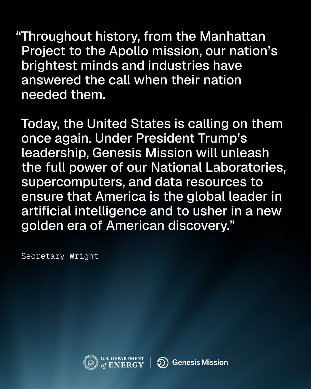 US announces "Genesis Project" with 90-270 day timeline