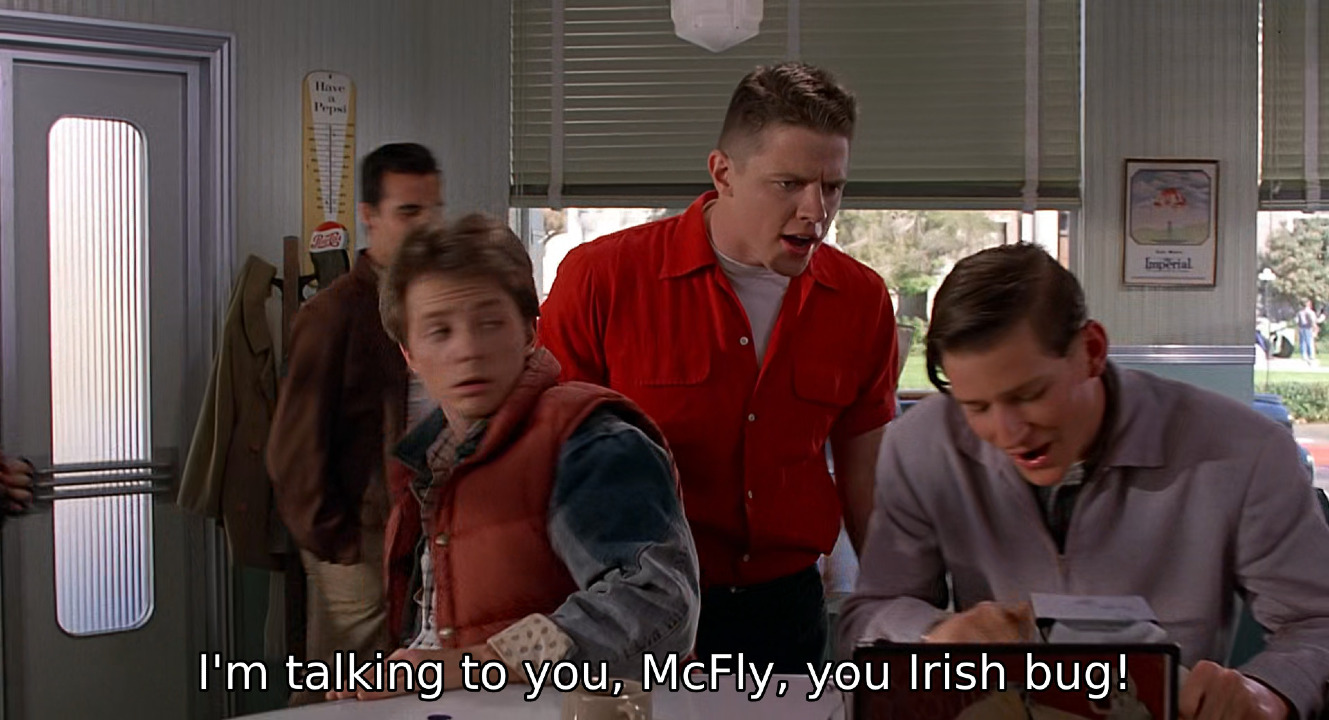 >>41591383Get a DeLorean?https://backtothefuture.fandom.com/wiki/McFly_family>The McFly family was a large family of mostly Irish descent. >The McFlys had arrived in America in the late 1800s with Seamus McFly, his brother Martin, and Seamus's wife Maggie heading for the West Coast.