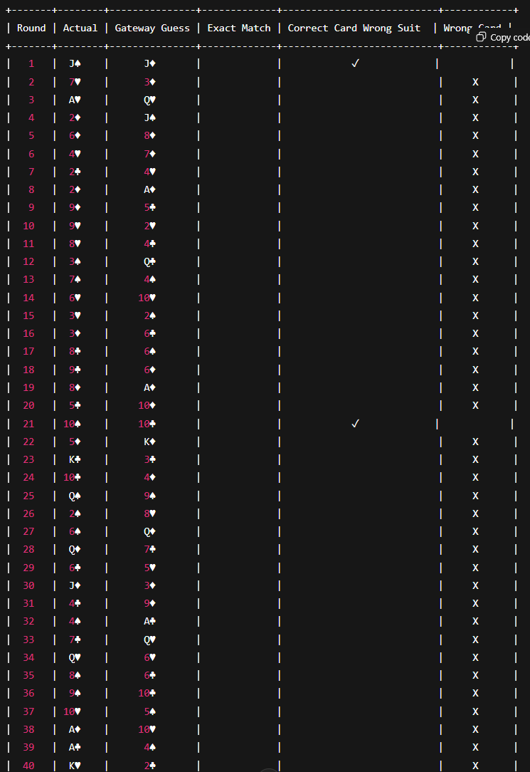 So I did the remote viewing with the deck of cards again... I had the reverse happen this time. The first thought that popped into my head before I even put the tape on was King of Spades. Of course I thought that was highly improbable and it was just my mind fixating on a random card. I tried hard to push it out of my head and completely disregard it. While the tapes were playing I came up with 6 of diamonds. After the tapes were finished I looked at the card I pulled and It was the King of Spades.