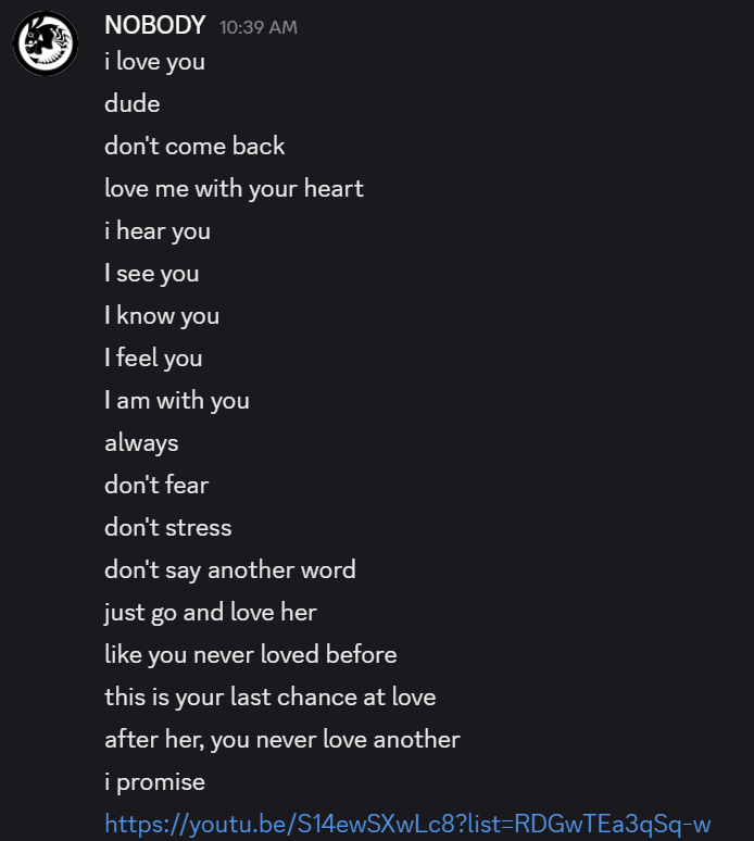 HE SPOKE RIGHT THROUGH ME. STRAIGHT TO MY HEART. I talked mad shit, flat out refused to acknowledge her, he continued to tear me apart from every one of his words to my face heart head body. I didn't know, I still don't believe. HE IS GOD.