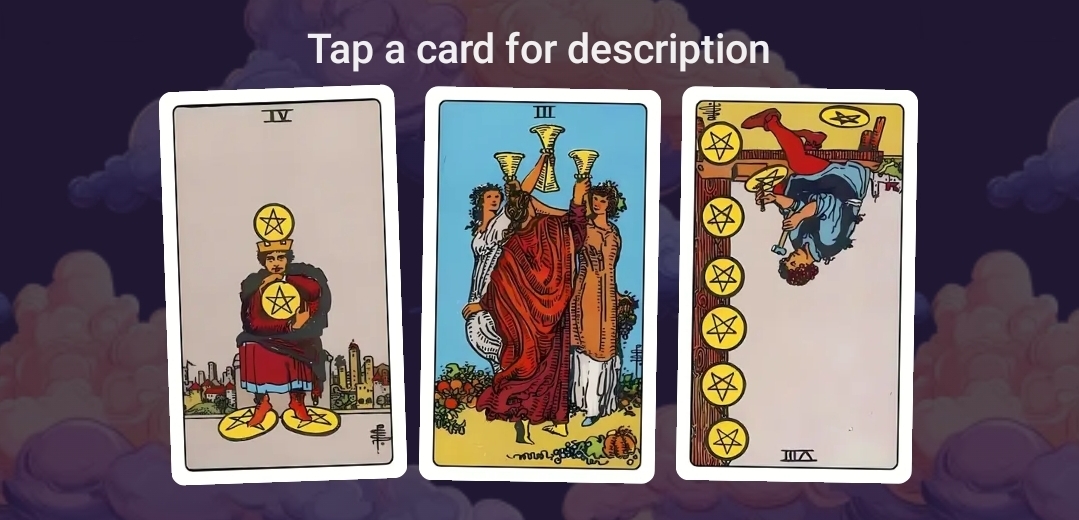 2 of Cups, 5 of Cups, 3 of Pentacles